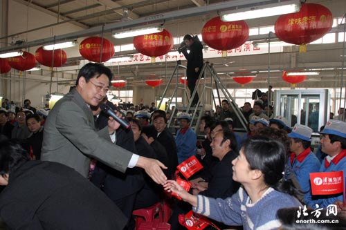又訊昨天,由天津歌舞劇院、天津交響樂團、天津市青年京劇團、天津評劇院、天津市曲藝團、天津市雜技團和天津市兒童藝術劇團的演職員組成的文藝小分隊,深入到本市重點企業天津津酒集團有限公司慰問演出。在繁忙的罐裝車間,演員們為生產一線的職工們獻上了精彩的文藝節目。許多演員走到工人師傅們中間,和他們手拉手同唱一首歌,車間內始終洋溢著熱情真摯的感人氣氛。青年歌唱家李華典等深有感觸地說,這樣面對面地為職工們演出,讓我們這些年輕的文藝工作者非常受教育和啟發。今後要更加積極地深入基層,為城市建設者、為廣大群眾奉獻更多更好的文藝精品。