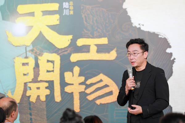 現場,舞劇《天工開物》的導演陸川上臺致辭,他表達了對宋應星精神的敬仰,並分享了將這一歷史人物搬上舞臺的創意和挑戰。陸川導演的講話同樣引起了在場讀者和觀眾的共鳴。天津出版傳媒集團黨委書記、董事長班峰也從出版方的角度發表了致辭。他強調了出版行業在傳承文化、弘揚科學精神方面的重要作用,並對《科學巨星:宋應星畫傳》的出版表示祝賀。他表示:“今天和未來,我們傳承創新,彰顯出版人的使命與擔當。 作為文化傳播的重要力量,天津出版傳媒集團始終致力於挖掘、整理、弘揚中華優秀傳統文化。《科學巨星—宋應星畫傳》的出版和《天工開物》舞劇在津的落地,正是我們踐行這一使命的具體體現。我們希望通過‘一書一劇’的聯動,形成強大的文化傳播合力。二者相輔相成,共同推動《天工開物》這部偉大著作及其所代表的科學精神、工匠精神在新時代的創造性轉化和創新性發展。這不僅是出版與藝術的跨界融合,更是我們向歷史致敬、向未來探索的積極實踐。”